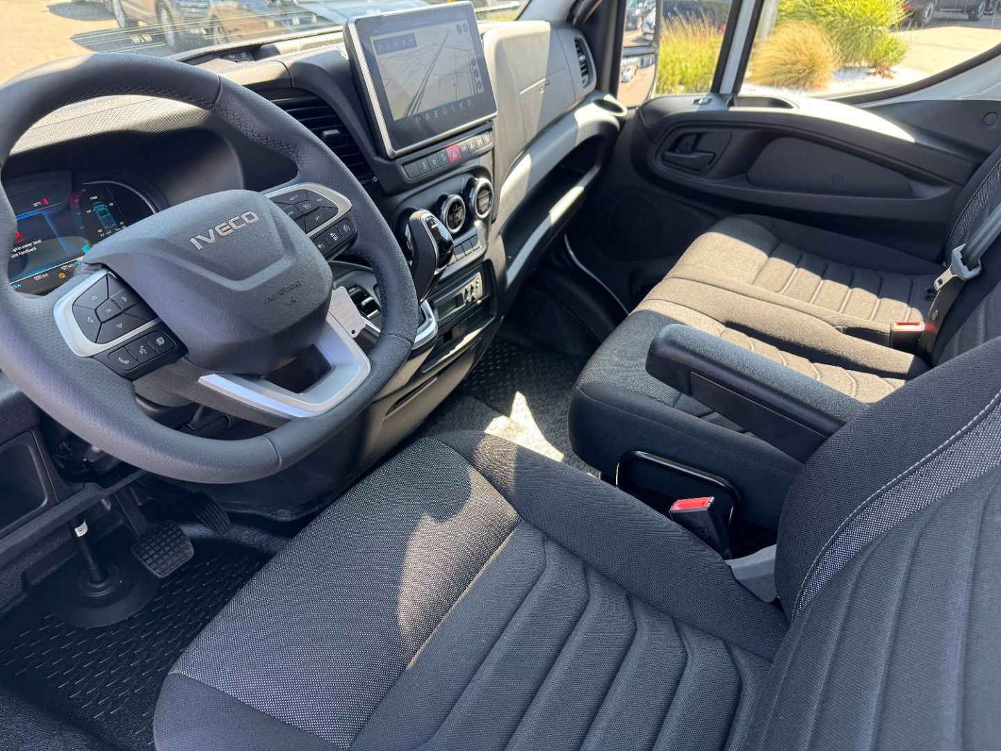 • Banquette passager biplace avec ceinture 3 points + tablette rabattable
