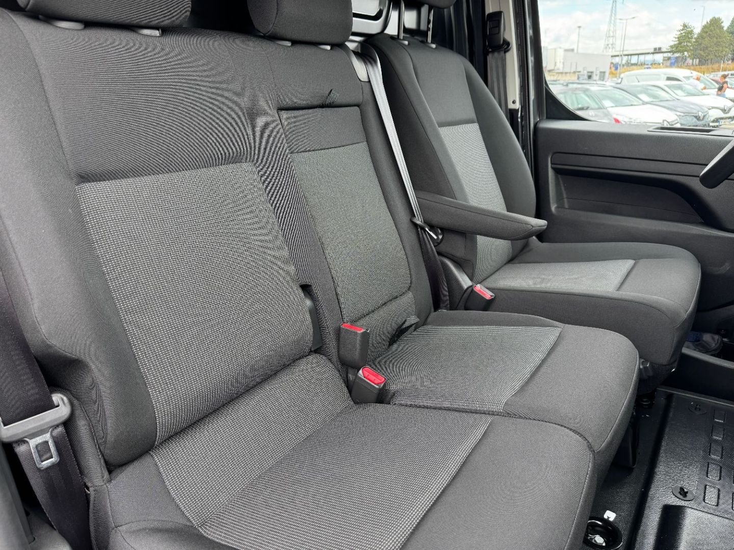 • Banquette passager 2 places appuis-tetes reglables moduwork tablette ecritoire,rangement sous assise centrale,siege lateral droit relevable (+0,5 m3),trappe de charge longue sous banquette passagers (+1,16 m)